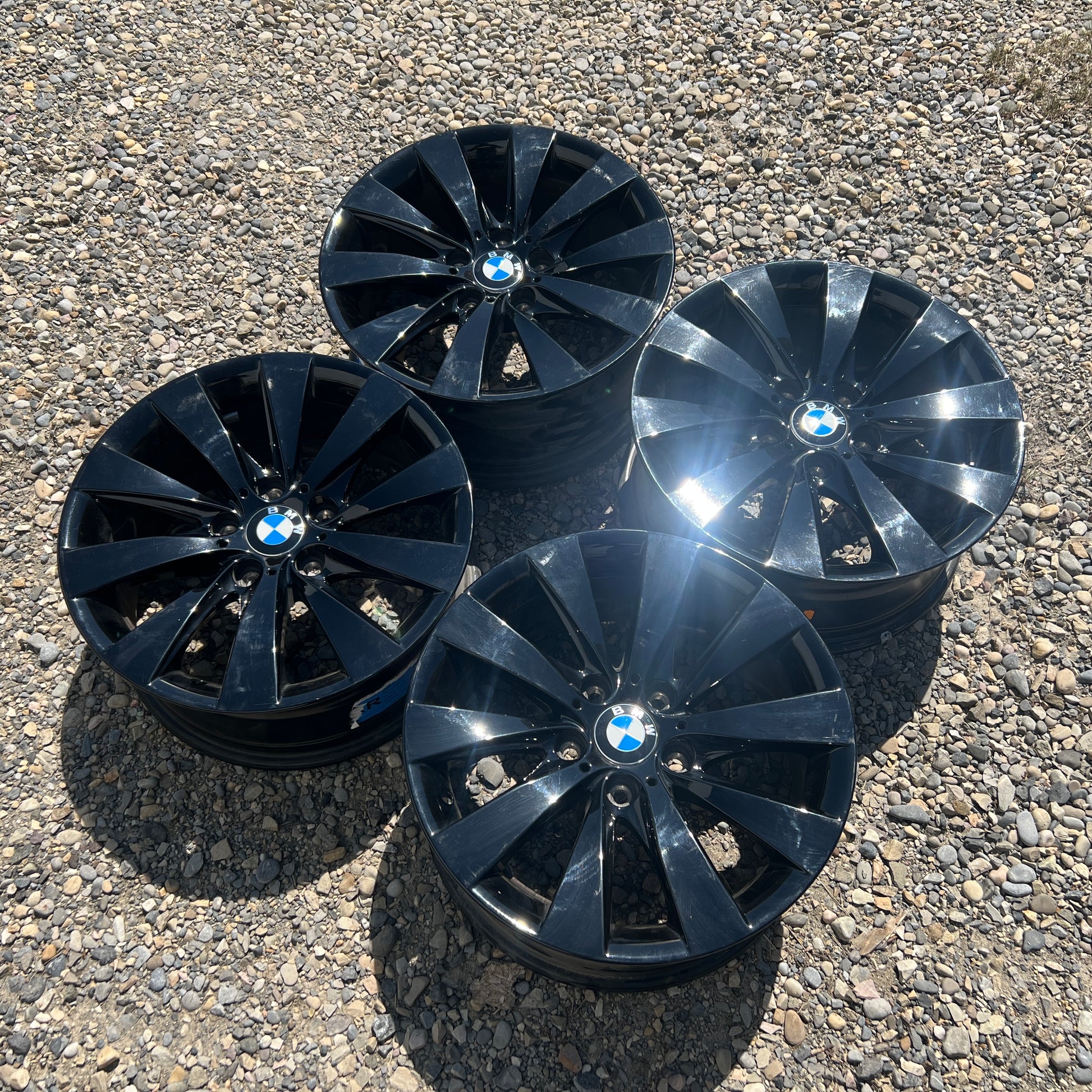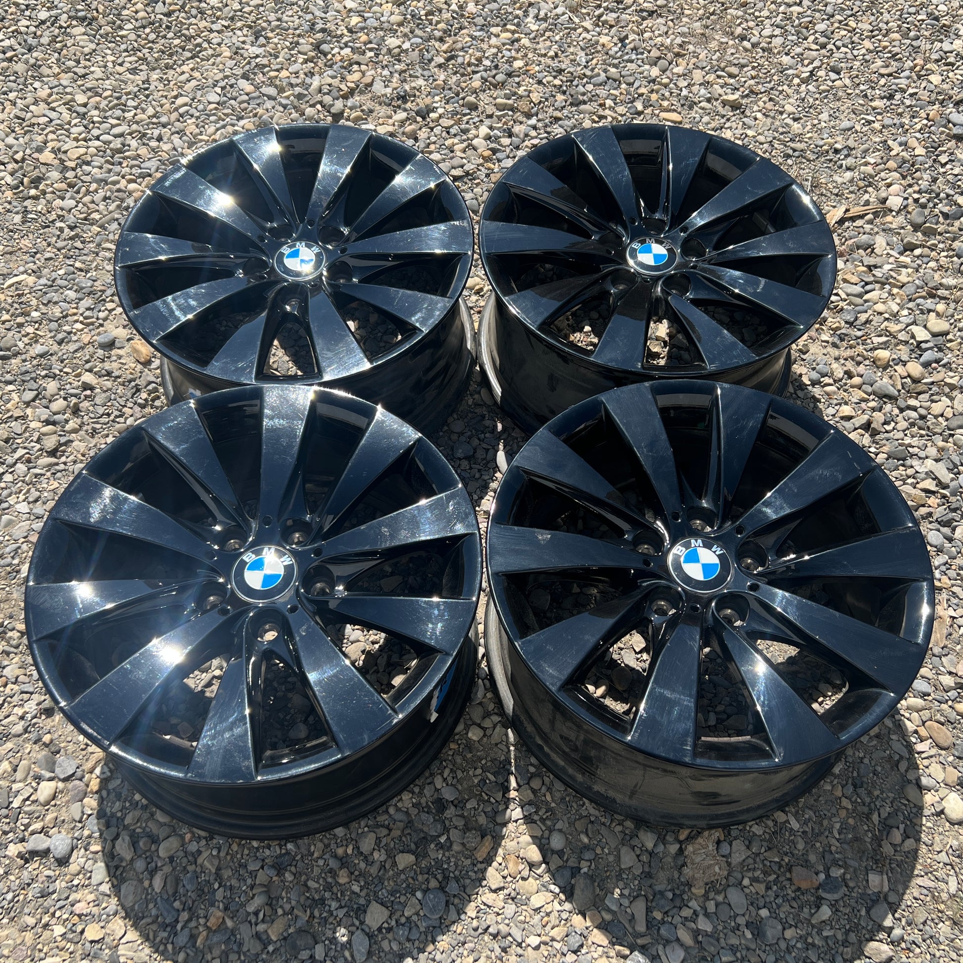 Set of 17” BMW Style 413 wheels. Originally equipped on the 2012-2019 3-series (F3X) but will fit other BMWs.