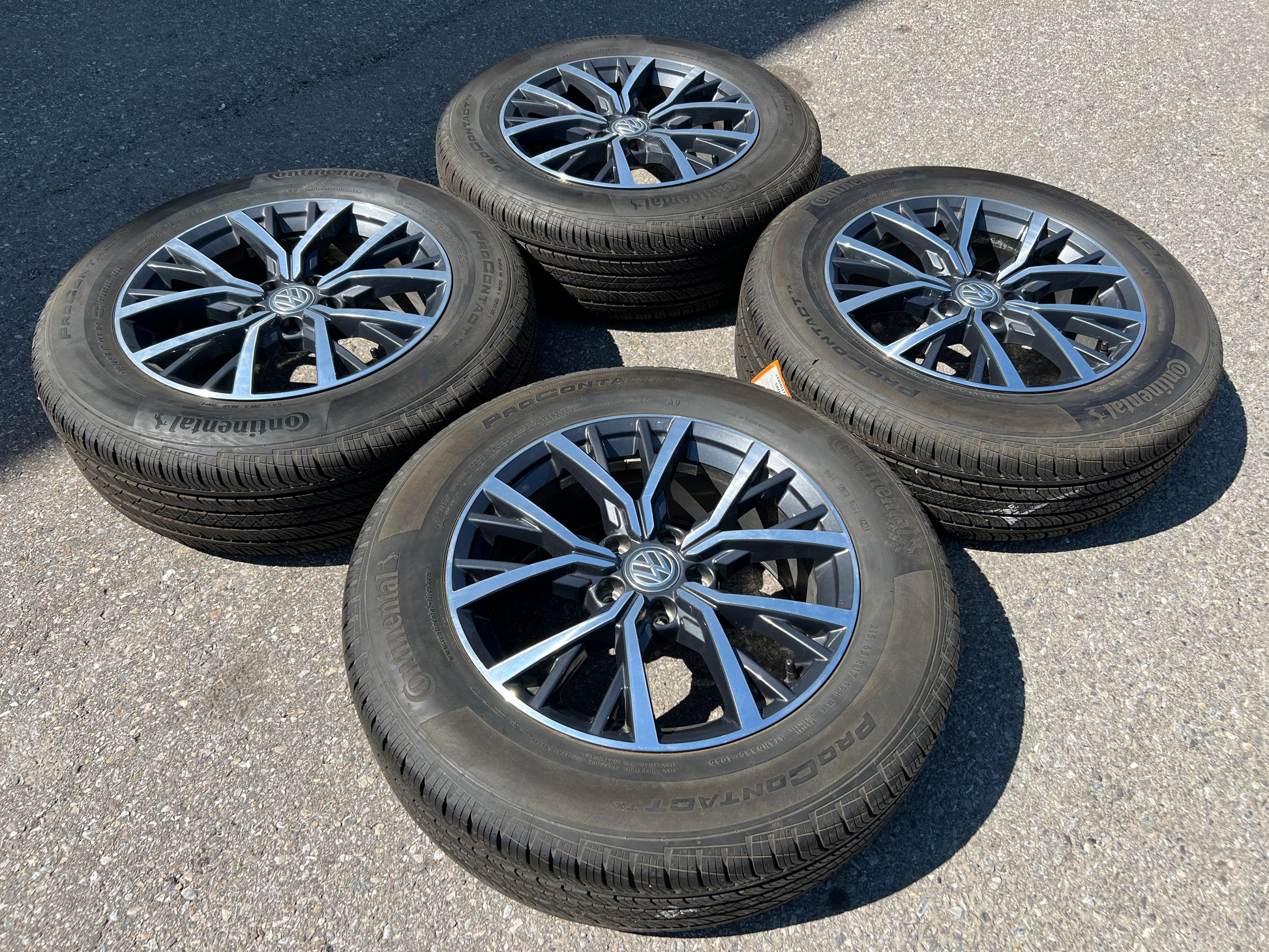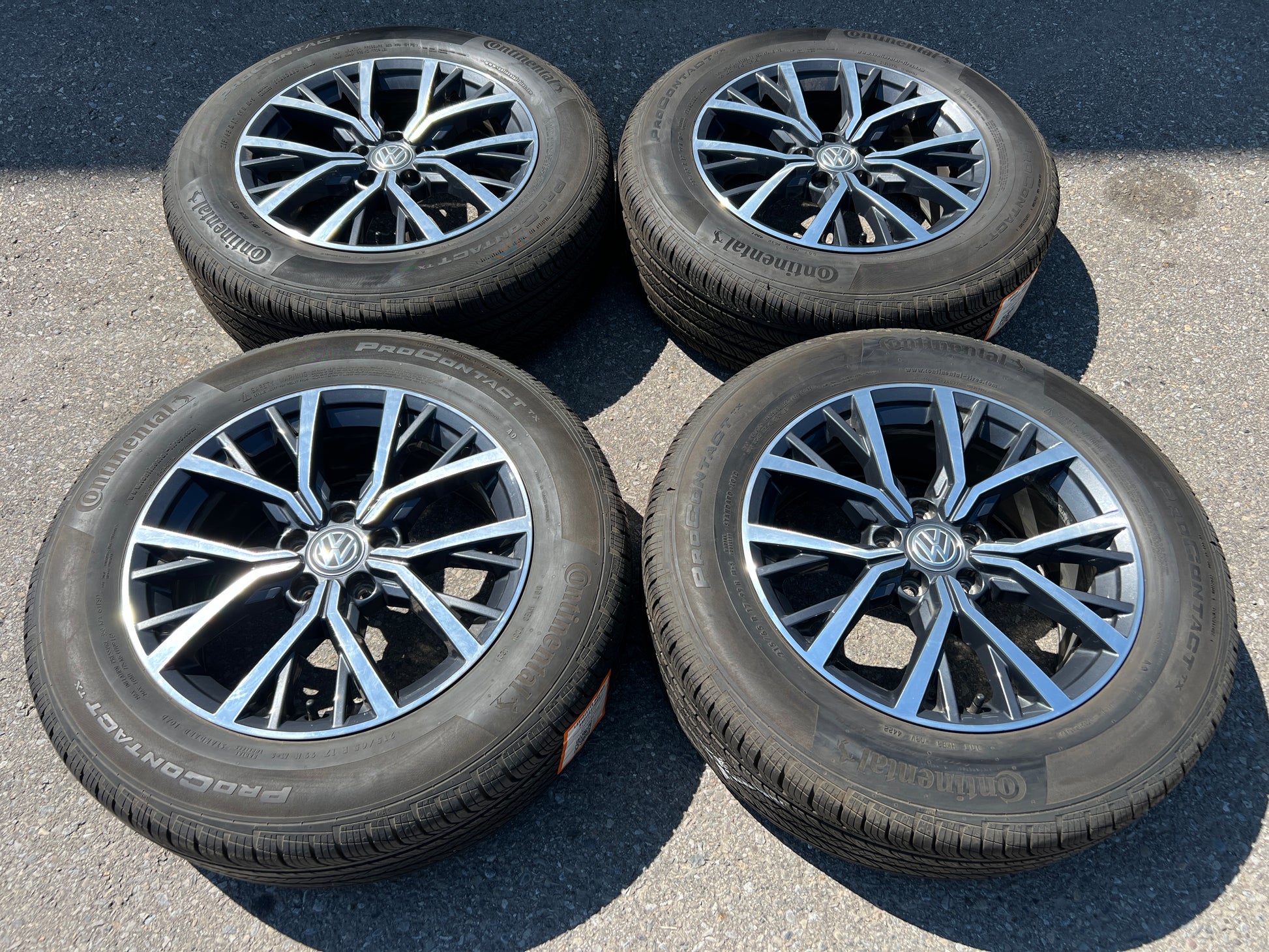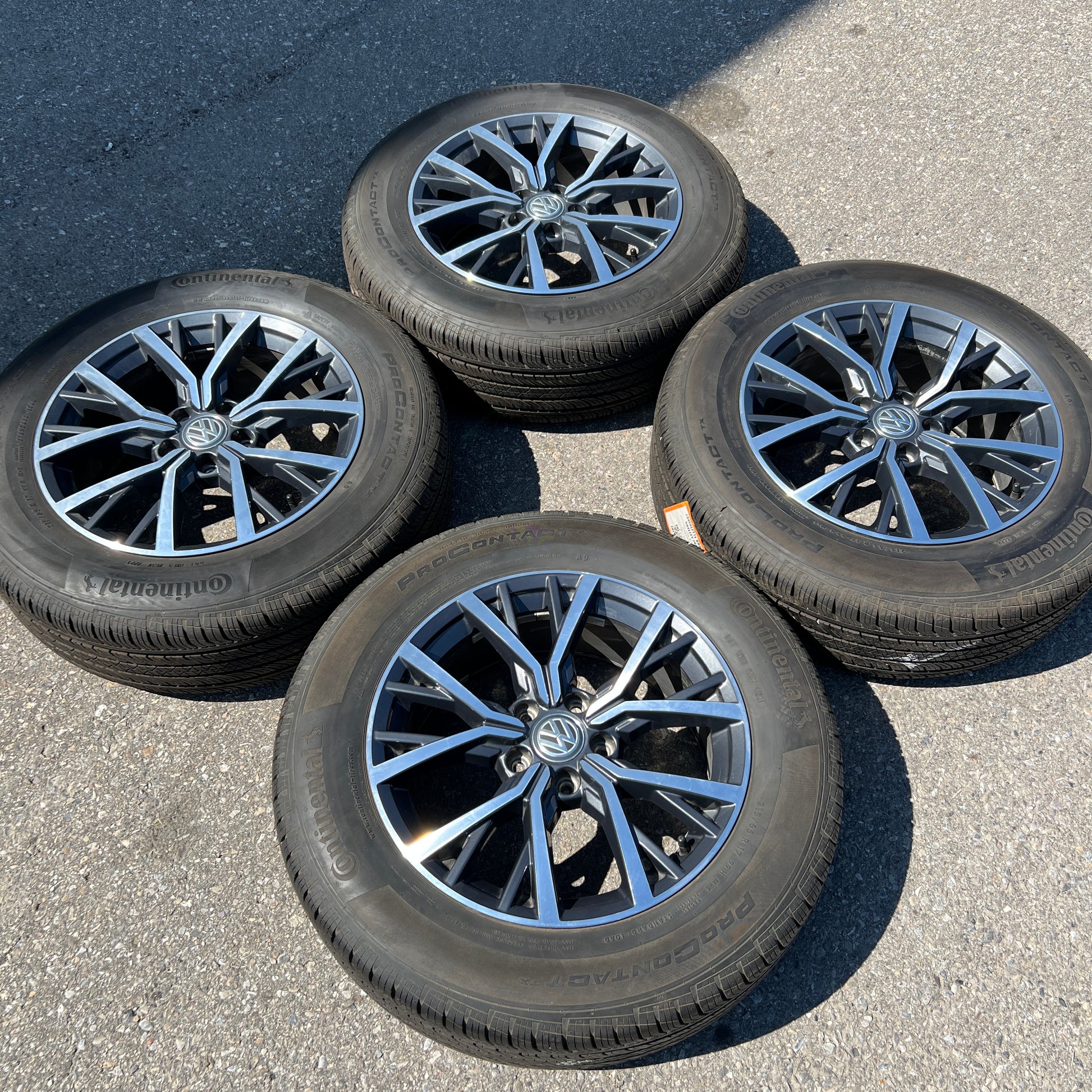 Like new set of 17” Volkswagen Tiguan “Tulsa” wheels and 215/65R17 Continental ProContact TX all-season tires. Fits 2018-current Volkswagen Tiguan. May also fit Audi Q3. Contact to confirm fitment on your vehicle if needed.