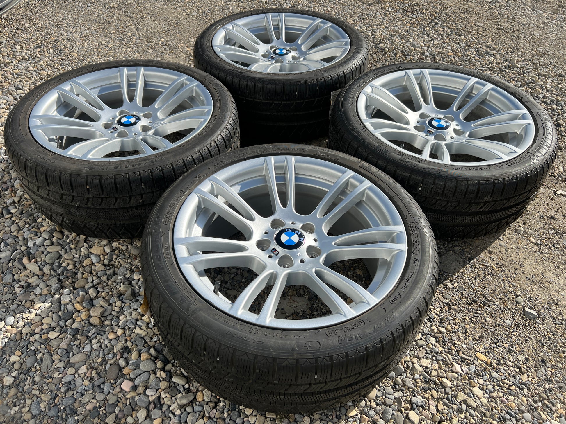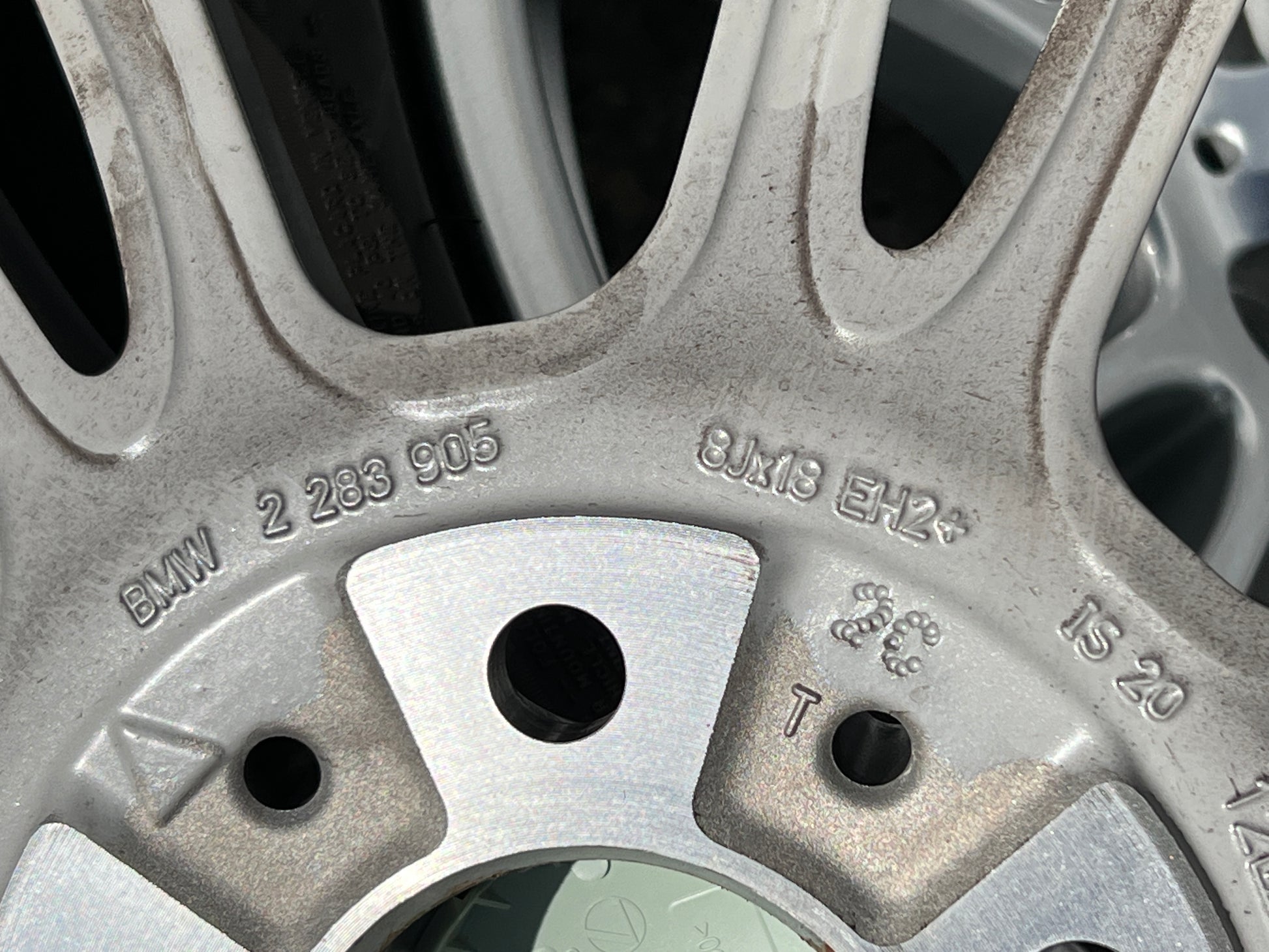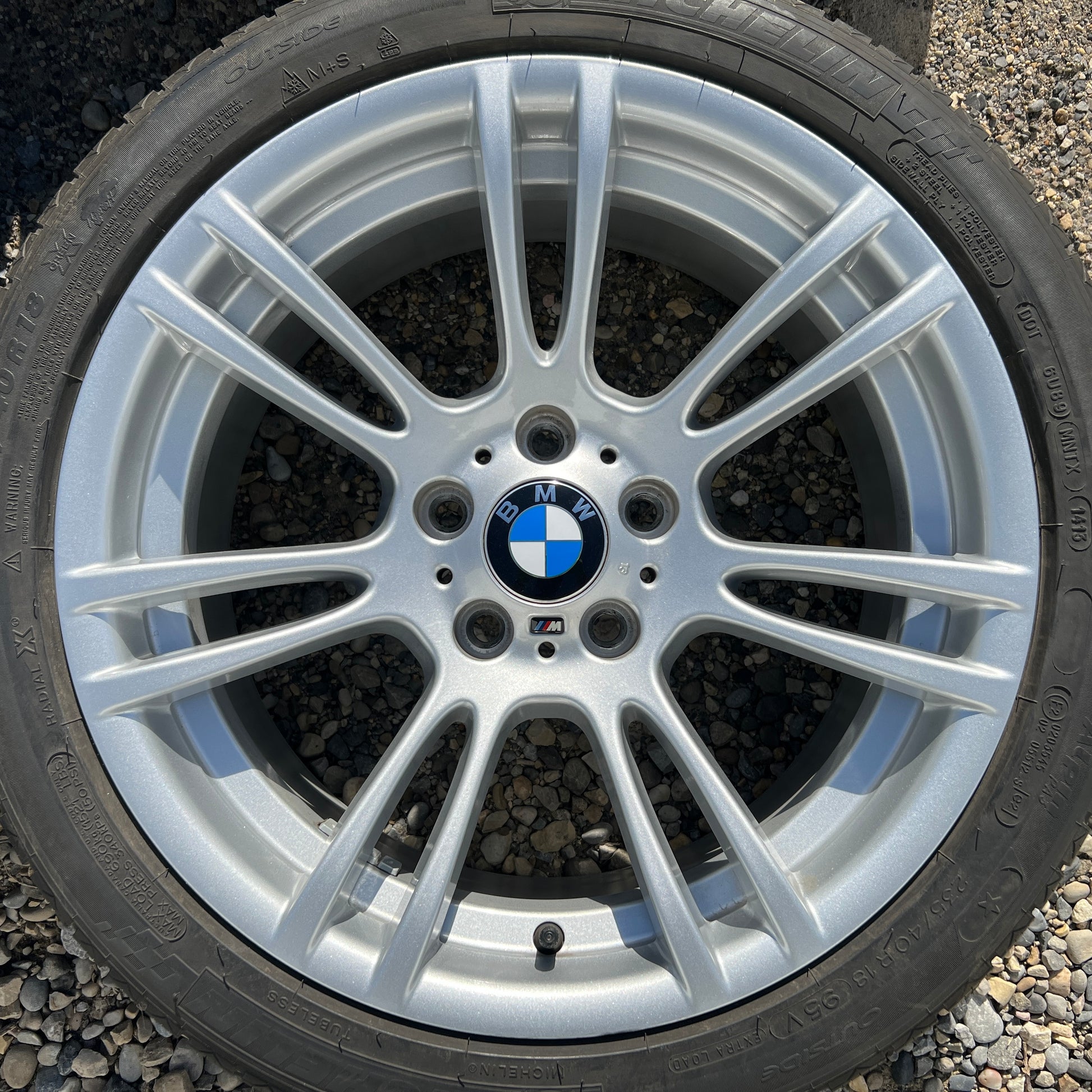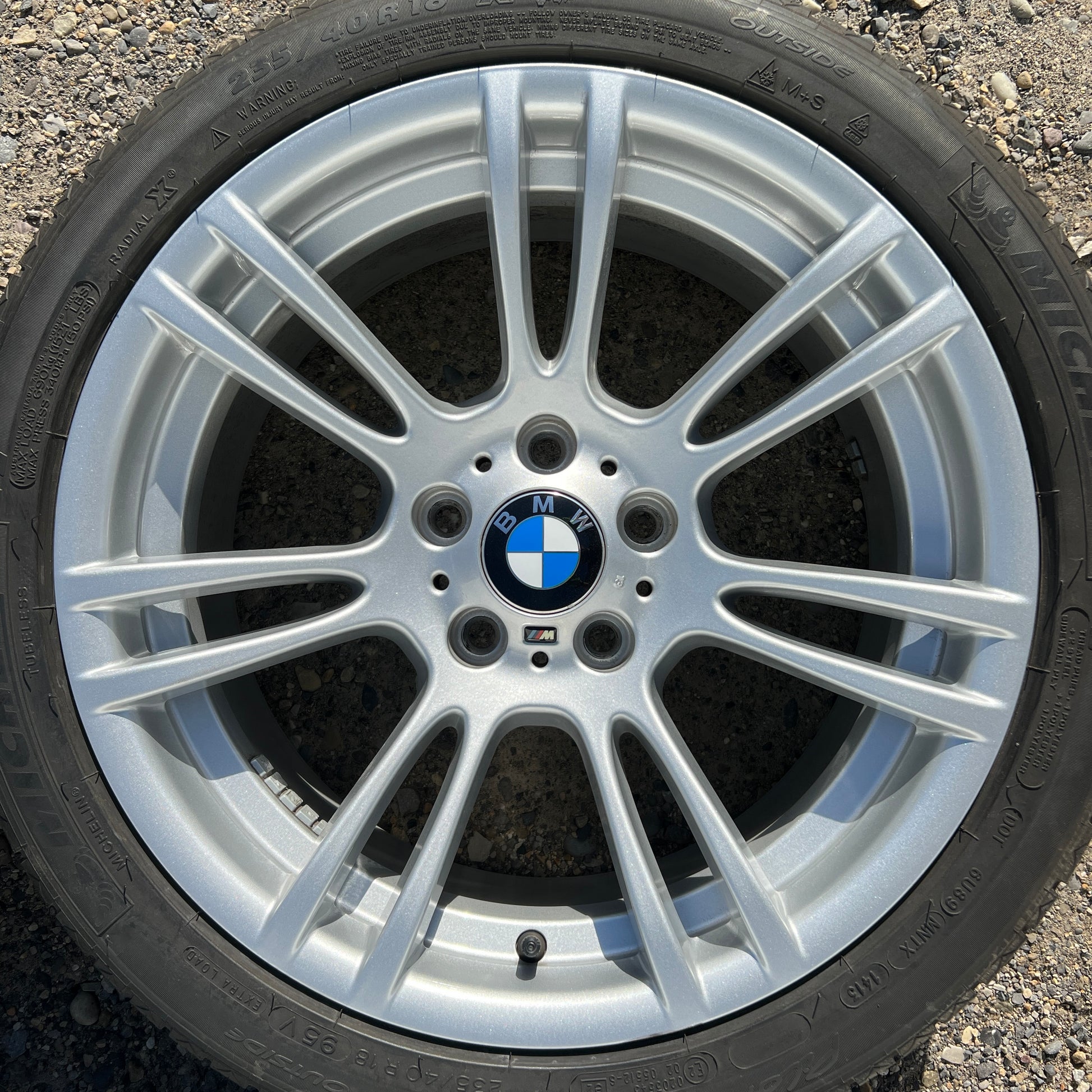 Set of 18” BMW Style 270M wheels in minty condition with original Michelin winter tires. These tires are old and should be replaced but hold air and can be used to store/roll a vehicle.