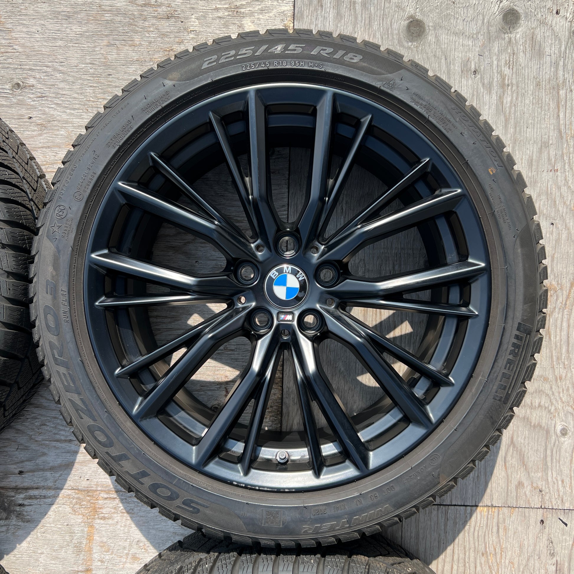 Like new set of 18” BMW Style 796M wheels and 225/45R18 Pirelli Sottozero 3 run-flat winter tires. TPMS sensors included.