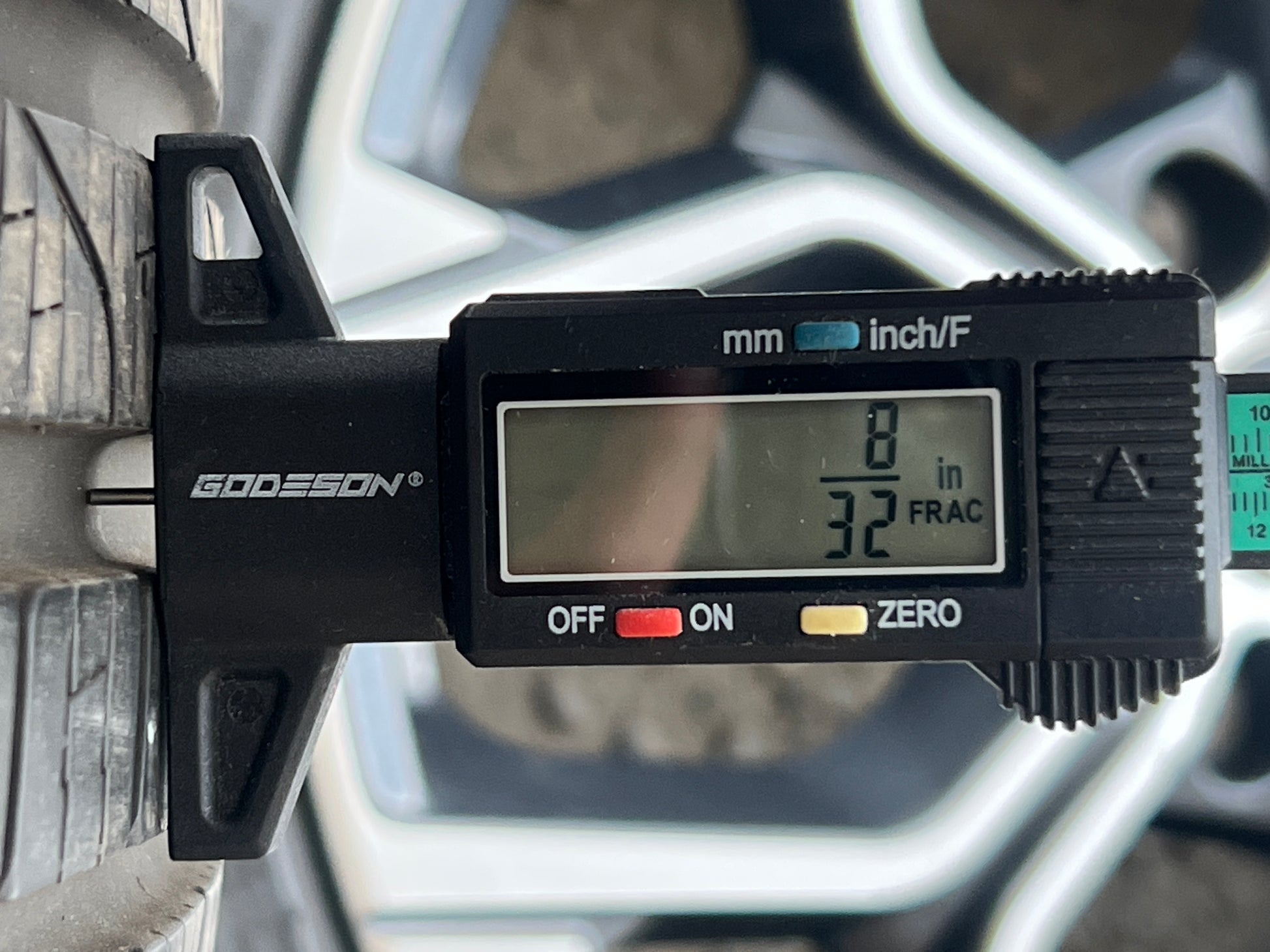 Tread depth: 8/32” (~80%) Rear, 6/32” (~60%) Front