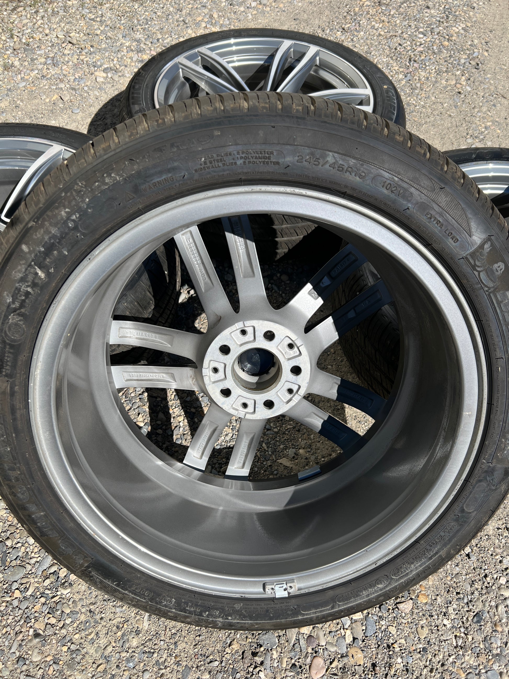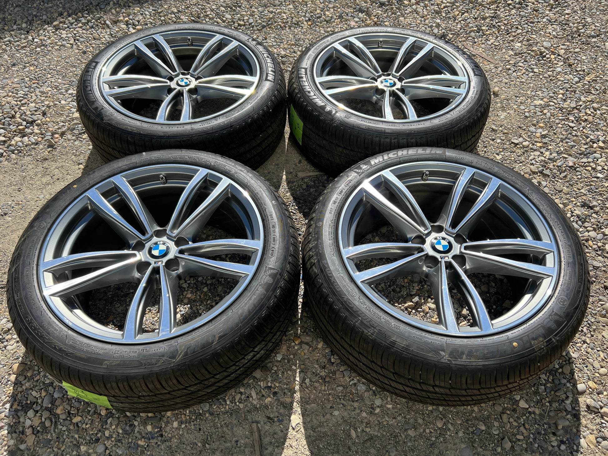 Nearly new set of 19” BMW Style 647M wheels with Michelin all-season tires and TPMS sensors.