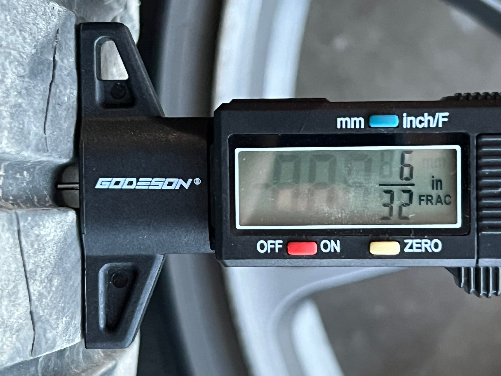 Tires have camber wear and have some life left but would recommend replacing tires soon. Minor but repairable curb rash on the wheels.