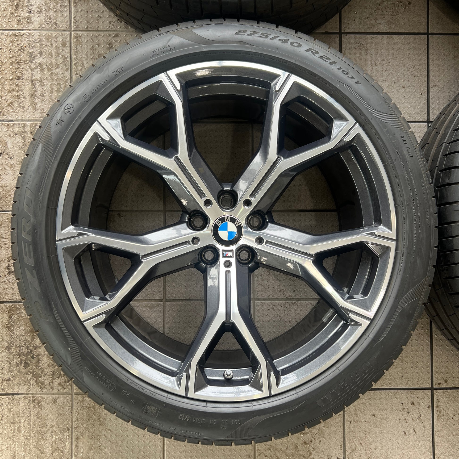 Set of 21” BMW Style 741M wheels and staggered Pirelli P Zero summer tires. TPMS sensors included.