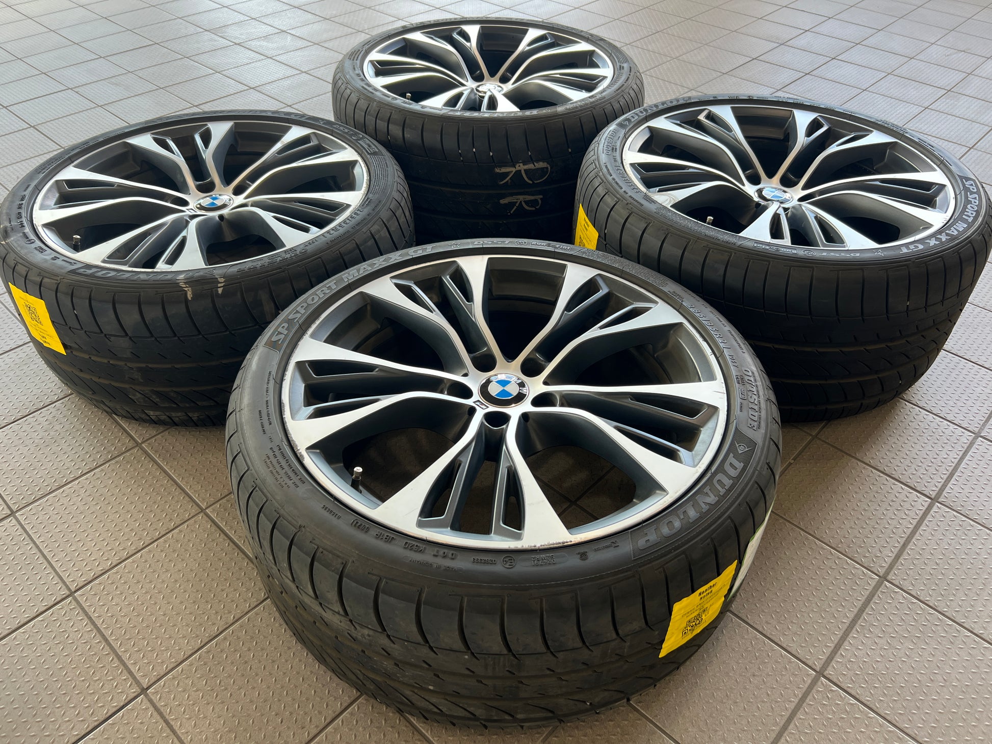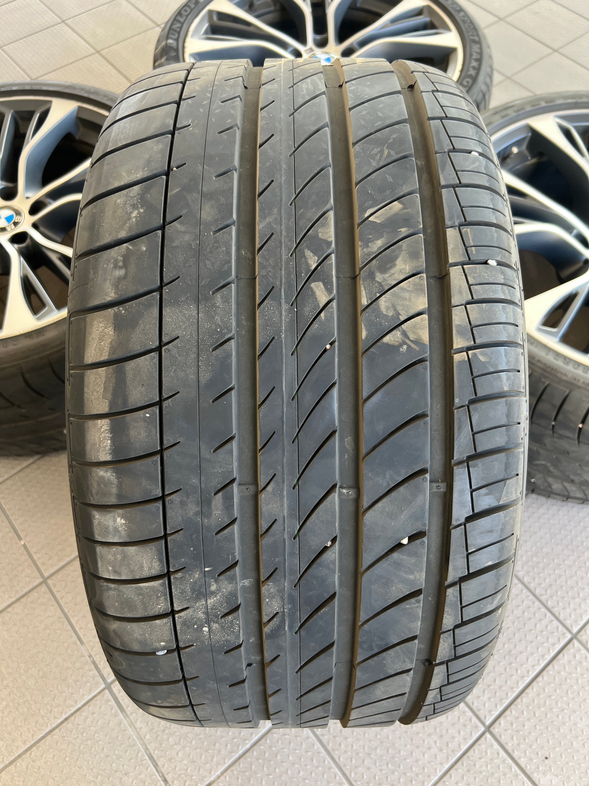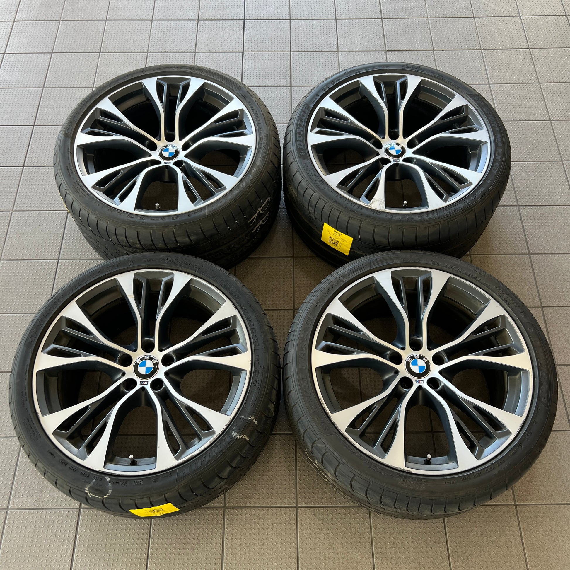 Set of 21” BMW Style 599M wheels and Dunlop summer tires. Unfortunately one front tire has a bulging sidewall so needs to be replaced. We can order/supply a new tire pending supplier availability.