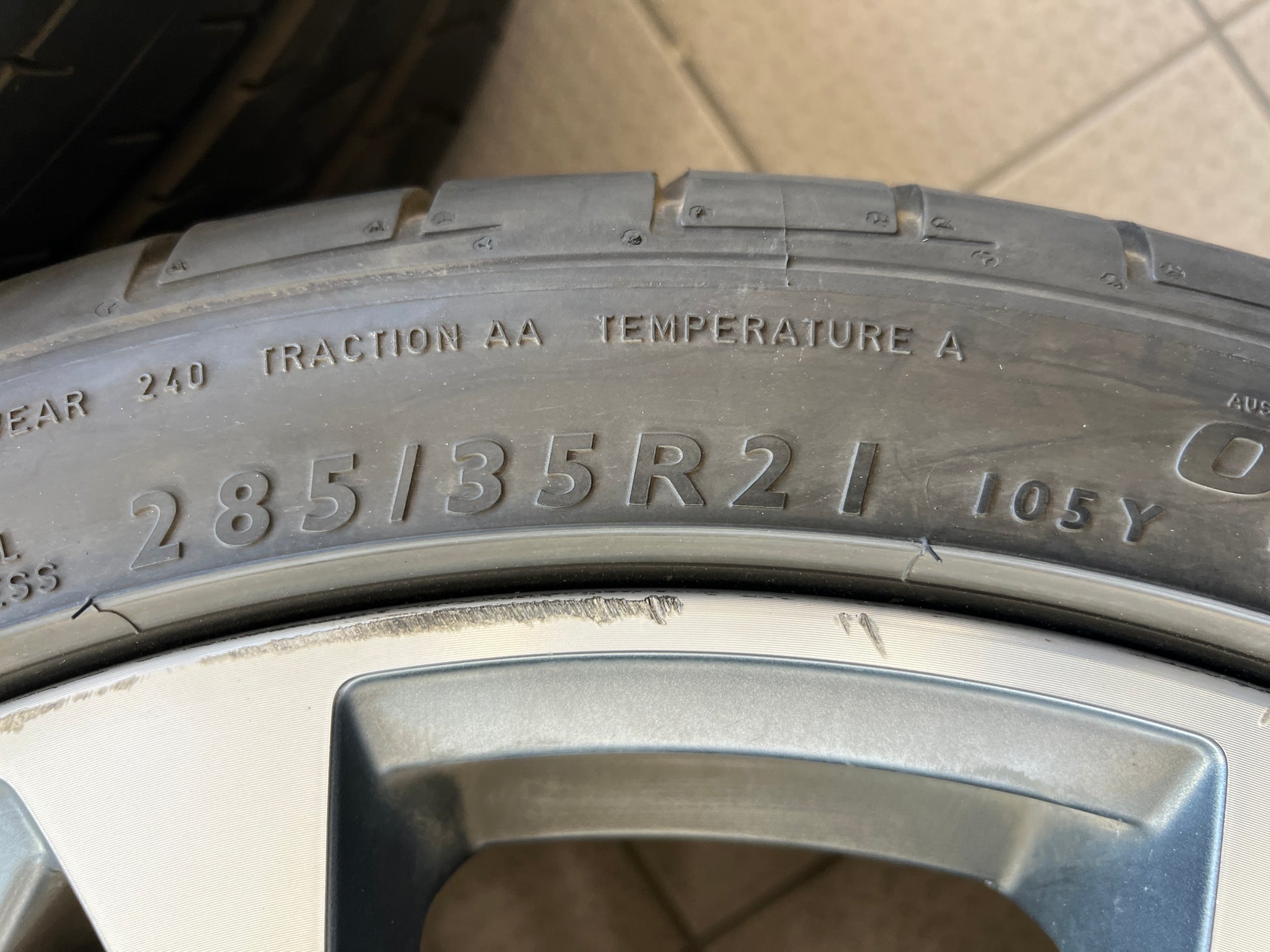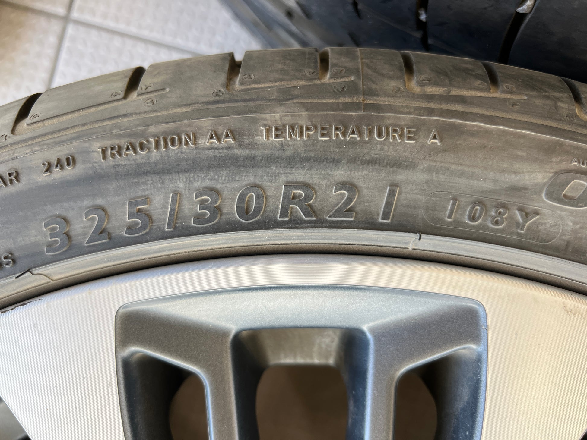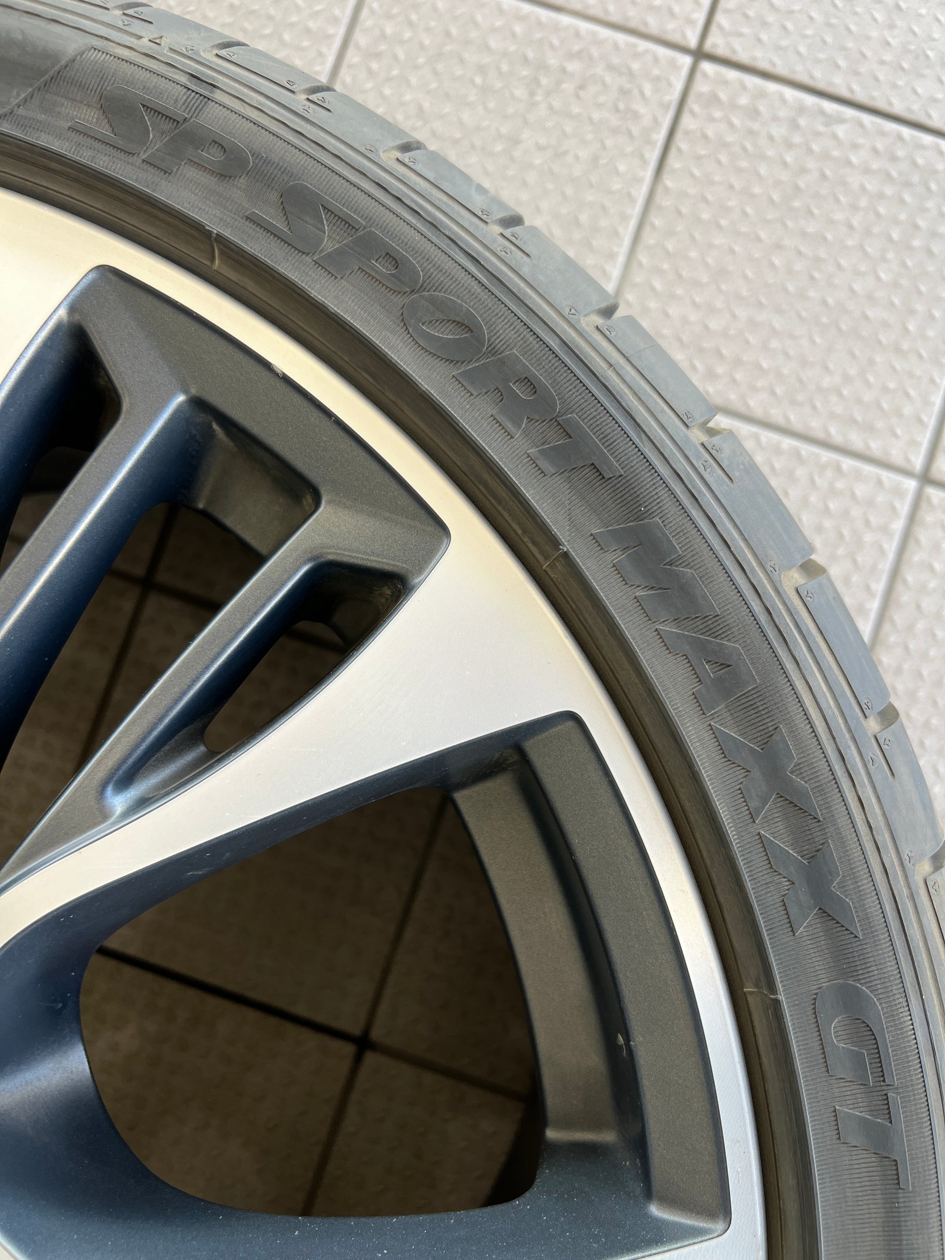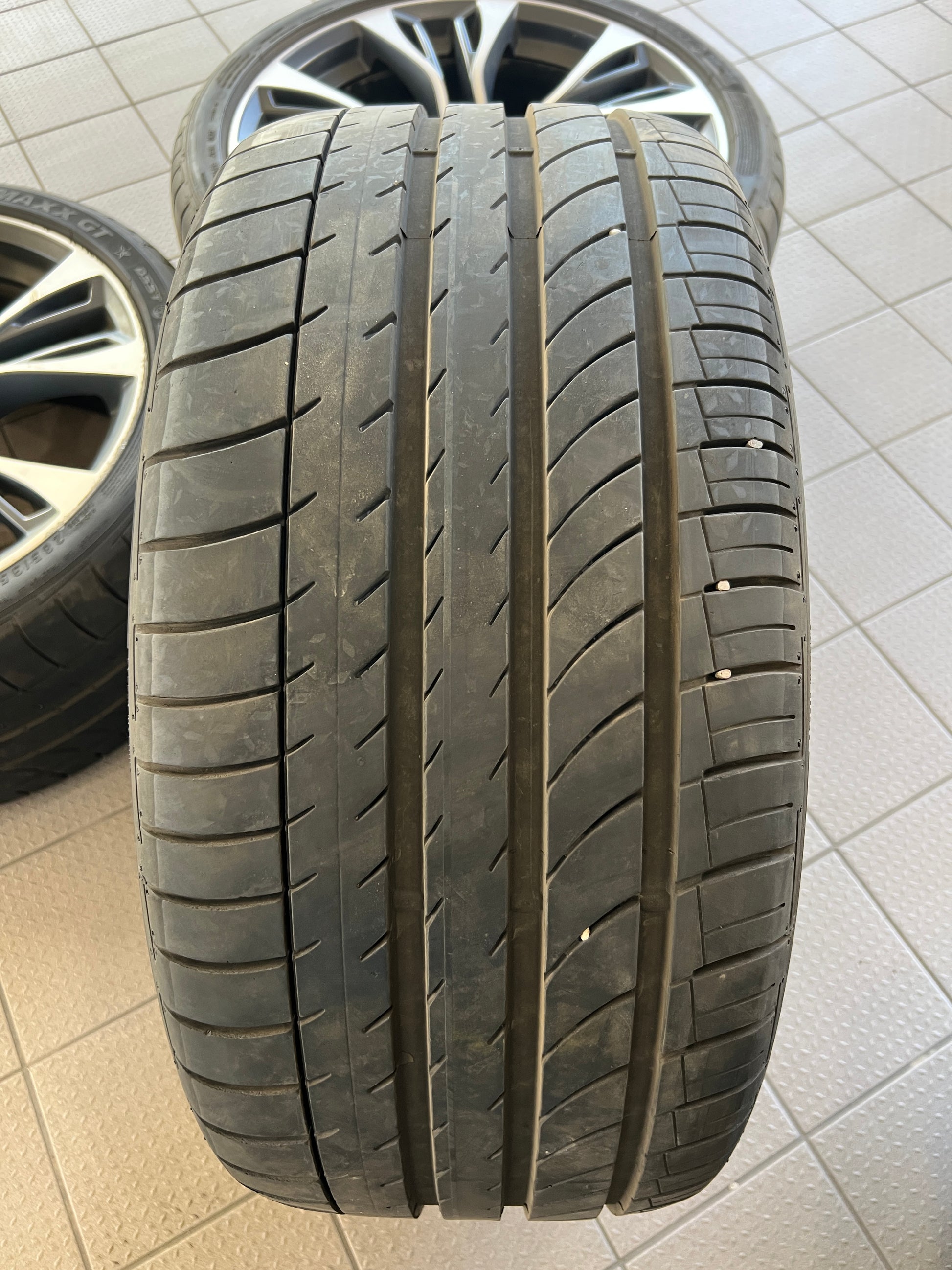 Set of 21” BMW Style 599M wheels and Dunlop summer tires. Unfortunately one front tire has a bulging sidewall so needs to be replaced. We can order/supply a new tire pending supplier availability.